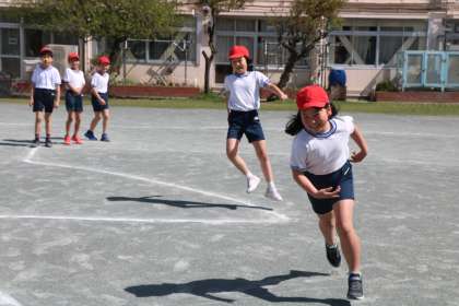 じゃんけんに負けて、大急ぎで引き返す姿に子どもたちの全力で取り組む様子がうかがえます。