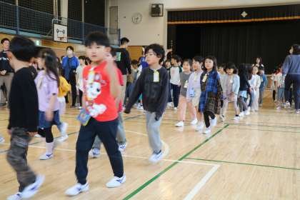 体育館から教室に向かうのも、元気の良い行進で帰ります。