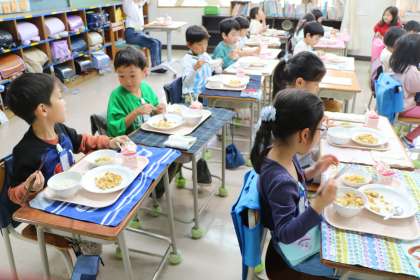 1・2年生用の麻婆豆腐は、辛さを控えめにしているので、「辛い」という子はいませんでした。ショウガやネギが程よくいいお味です。
