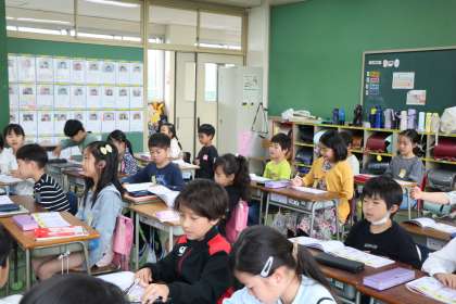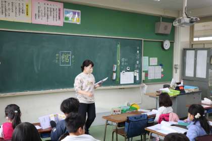 空中に大きく字を書くことを、「空書き」などといいます。空書きしながら、みんなで書き順や気を付けるポイントをもう一度確認します。そして、次にノートでマスの中にどういうバランスで書くか気を付けながら練習します。