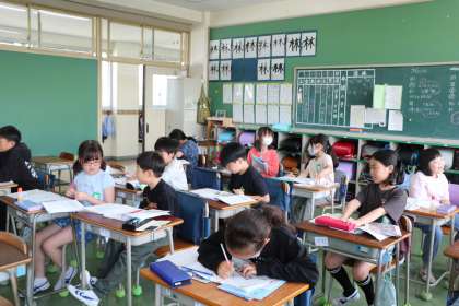 4年生算数の様子です。砧小学校では3年生以上の学年で算数少人数指導をしています。4年生3クラスを4つのグループに分けて学習を進めます。