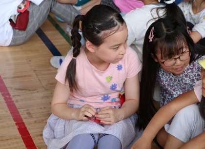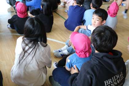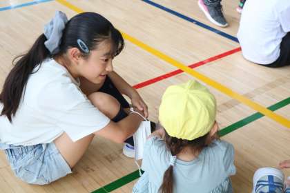 最後にそれぞれの班で「ありがとうございました」「どういたしまして」の挨拶をかわしました。5年生が「何が一番楽しかった?」「今度は何して遊びたい?」としばらくの時間会話を楽しんでいます。