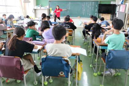 5年生の学習の様子です。どの学年も落ち着いて学習に取り組んでいる様子に、参観に来られた教育委員会の先生もビックリされていました。子どもたちももちろん頑張っていますが、先生たちも授業で勝負!子どもたちが主体的に楽しく学べるように工夫した授業づくりに頑張っているのです!!