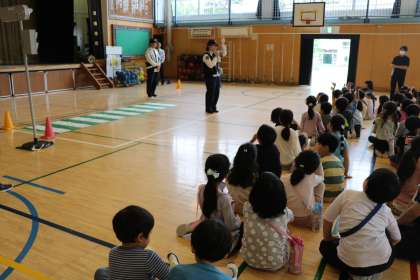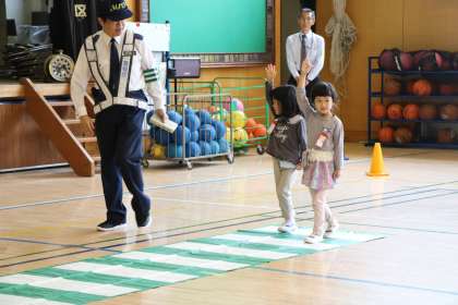 今日は成城警察の方にご協力いただき、交通安全教室がありました。