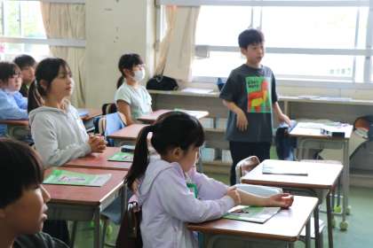 子どもたちが考えたことについて発言したり、聞いたことからさらに考えたことを発言したり、とても活発に自分の考えを言いながら考えを深めています。