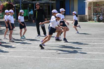 6年生体育の様子です。日本の陸上競技選手のリレー種目など、活躍が華やかになってきました。個々の選手の走力の高さだけでなく、バトンの受け渡しの精度の高さなども見ごたえがあります。子どもたちも短距離走やリレーの学習の良さや魅力を知り意欲を持って取り組んでほしいです。