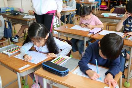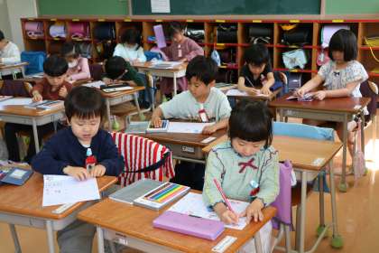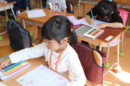 ひらがなの練習を頑張る1年生です。