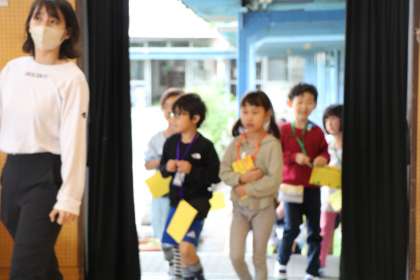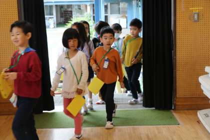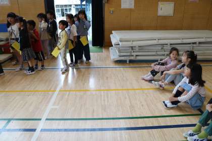 今日は1・2年生は学校探検です。2年生が今日の日を楽しみに準備してきました。