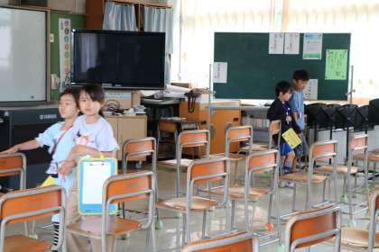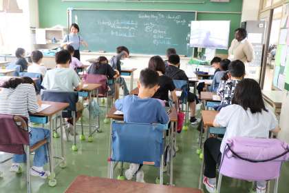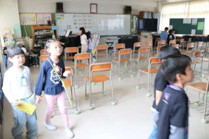 4年生の外国語の様子を見たり、音楽出を探検したり2年生と仲良く行動できる1年生です。