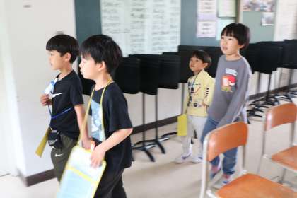 音楽室を探検したら、6年生がカッコよく勉強していました。