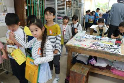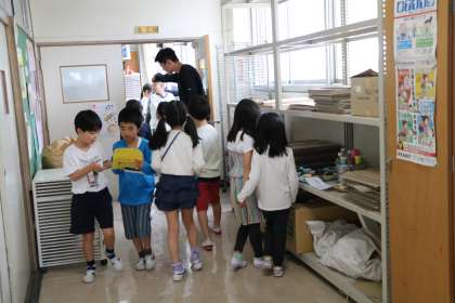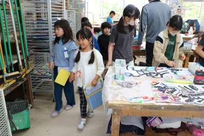 図工室前の廊下の棚や図工室の中には、素敵な作品がたくさんあります。