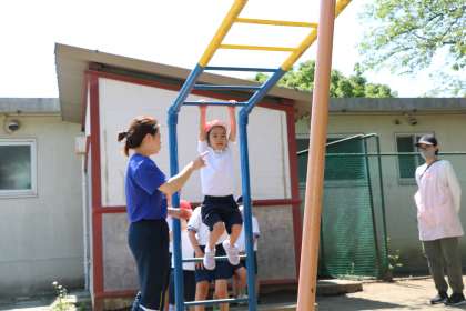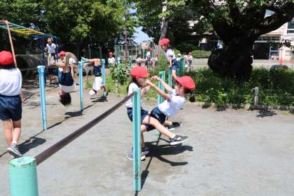 鉄棒で2人でやっている技は、「ブランコ」という技だそうです。