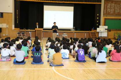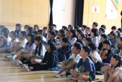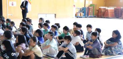 写真は3年生セイフティ教室の様子です。成城警察の方にご協力いただき、子どもたちが犯罪に巻き込まれることを防ぐために、毎年学年に応じた話をしていただいています。