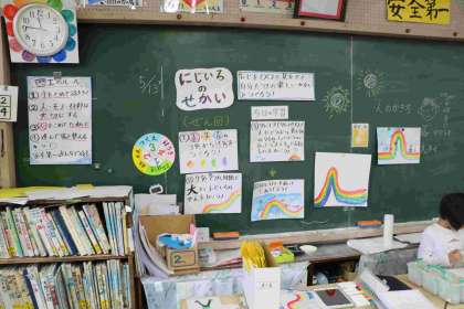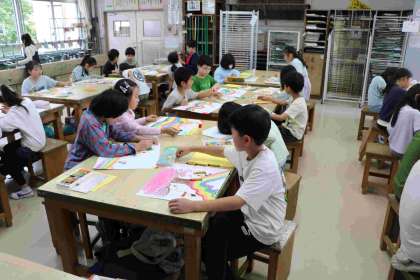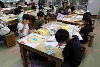 虹を何に見立てるかで、絵がガラッと変わります。すてきなデザインができてきました。