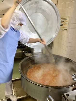 朝から煮込んだミートソースとジャガイモが相性抜群で、こどもたちから「おいしい!」と人気がありました。冷凍みかんは6月から9月限定で提供します。今日はまだ暑くはありませんが、こどもたちはおいしそうに冷凍みかんを食べていました。