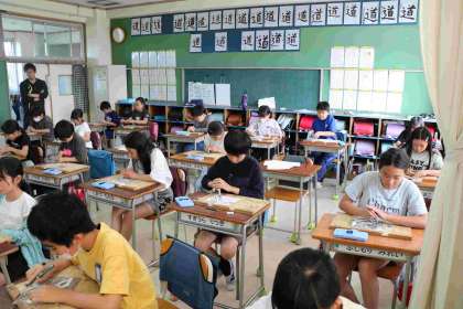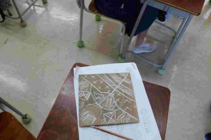彫刻刀を使った学習が始まりました。チョークで下絵を描いた後、安全指導をしっかりと聞いて、慎重に彫り始めました。木が彫られている音が聞こえるくらい、静かに集中できている子もいました。来週の続きが楽しみです。
