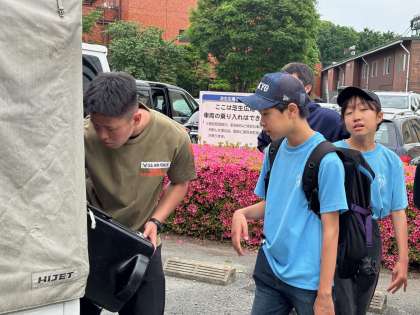そして楽器をしまうとどこからともなく卒業生が出てきて、搬出用の車まで運ぶのを手伝ってくれました。これは実は毎年のことで、誰が頼んだわけではないのですがkのようにたくさんの卒業生が手伝ってくれるのです。本当に温かい砧っ子たちで、先生たちもとっても嬉しいいひと時なのです。