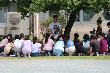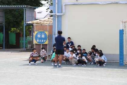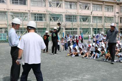 訓練が終わっても、学級ごとにふりかえりをします。教室に戻るまで訓練、真剣に取り組む子どもたちです。