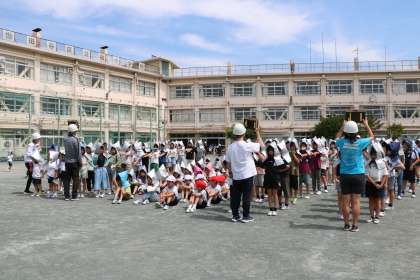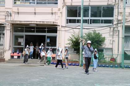 今日は今年度2回目の避難訓練です。砧小学校では、いろいろな有事を想定して毎月1回避難訓練を実施しています。今日は、火事で東階段が使えないという想定でした。
