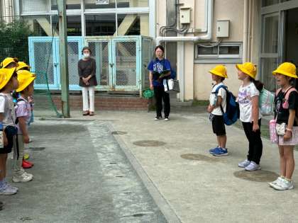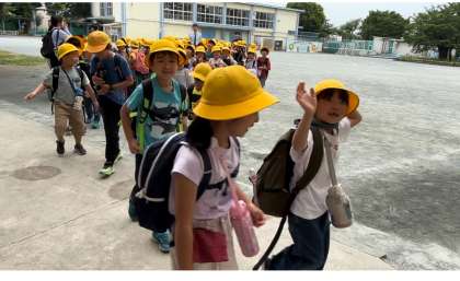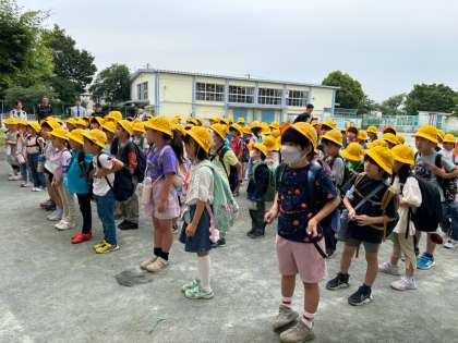今日は2年生の遠足です。曇りで時々日がさしてくる風の心地よい朝です。出発式のため司会役の三人の素晴らしいこと!!そして参加する全員の話を聞く態度も大変協力的、やる気いっぱいです。とても立派な出発式でした。たくさんの先生方、お兄さんお姉さんが校庭から、教室の窓から「いってらっしゃーい」と見送ってくれました。