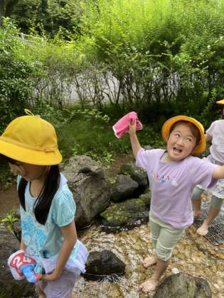 せせらぎでしばし水遊びを楽しみました。
