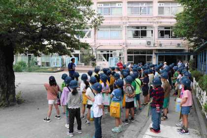 社会科の勉強のために行くことがしっかり意識できていて、集合した時の話の聞き方も真剣です。