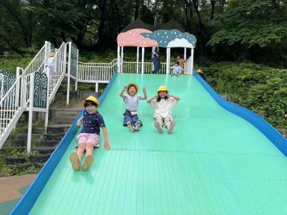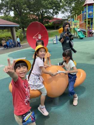 お弁当の後は、広場や遊具3ヶ所に分かれてクラス毎に遊びました。