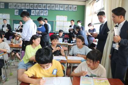 友達とペアになり、調べたものを須吾に交流します。先生が、「共有することでどうなるんだっけ?」と投げかけると子どもたちから「考えが深まる」という声が返ってきます!交流したものを基に気候と生活の関連について考えます。