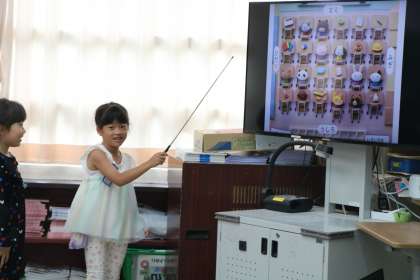 1年生算数「いろいろな位置から順番を言おう」の様子です。教科書の絵を使って、全員が「前から〇番目」「後ろから〇番目」など発表しながら確認します。繰り返しいろいろな言い方を練習して習得していきます。