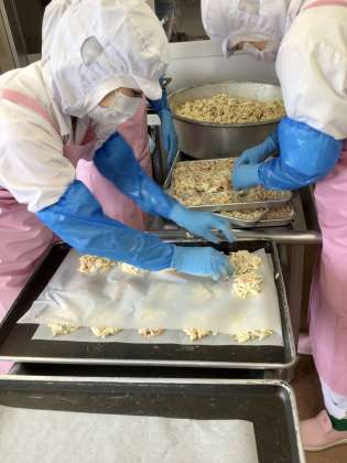 かきあげもひとつひとつ手作りしています。揚げたてのかきあげはさくさくでとてもおいしくできました。