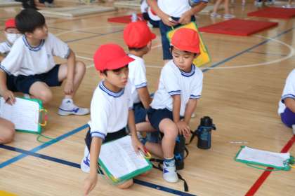 5年生は測定だけでなく、順番を待っている間に良い記録が出るコツを教えたり、水分補給やトイレの心配をしたり、とっても優しくリードしてくれます。