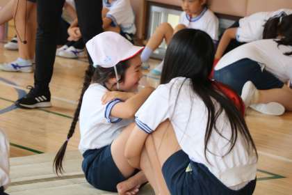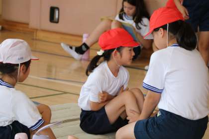 測定をしながら、「がんばれ」「もう一息だよ」と応援の声をかけてあげる優しい5年生です。