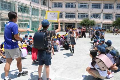 校庭に、下校コースごとに並びます。6年背がリードしてくれるのでとっても助かります。