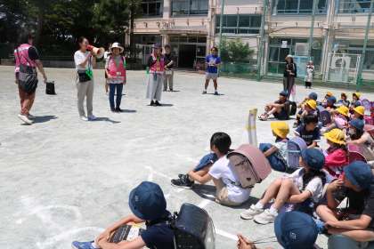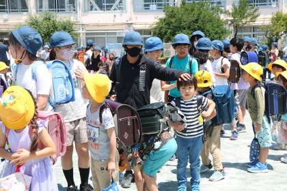 有事の時、今日のような下校方法をとることも想定し年に一度訓練できることは安心にもつながります。自分の家の近くに、この子も、あの子もいるんだ、、あの子のお母さんなんだ、などと知ることは子どもたちにとっても大切なことだと考えています。校外委員の保護者の皆様、暑い中ありがとうございました。