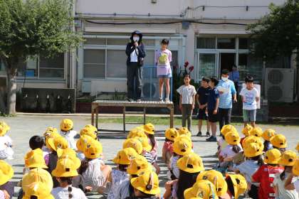 自分のクラスの担任の先生かな?と先生の表情を見てヒントにする子たち。先生の意外な一面を知れて楽しい集会でした。