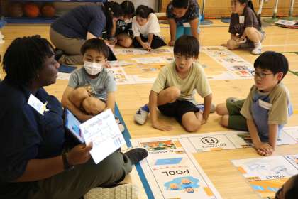ネイティブの先生方がたくさんいらしてくださり、ほとんどAll Englishで進んでいく学習でした。子ども達はとっても楽しそうに3つのコーナーを回りながら英語に親しんでいました。