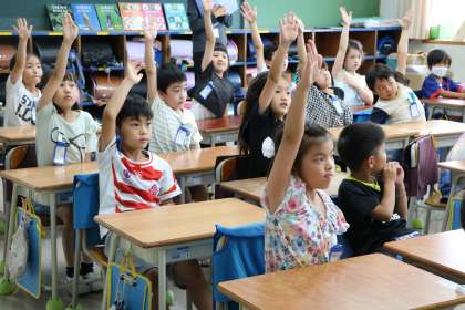 発言する友達の方にちゃんと体を向け、詰まって言えなくなった子だけでなく誰にでも「がんばって!」と声をかけてあげられる、とっても優しい学級です。