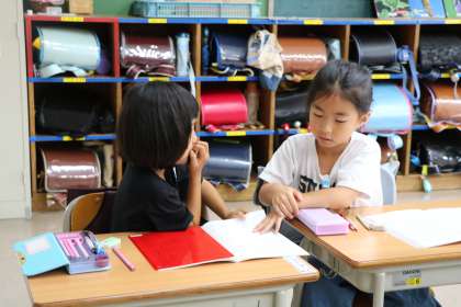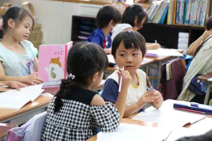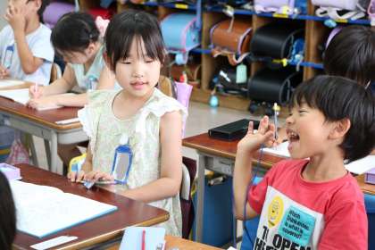 隣の友達と、ノートに書きだした言葉を交流しています。