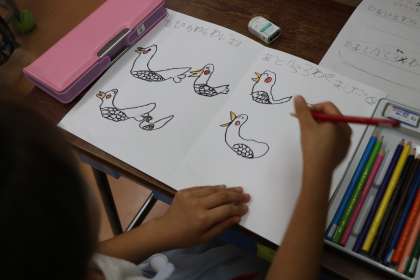 1年生算数の様子です。式から問題を作っています。