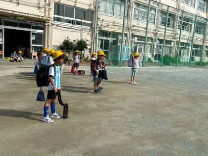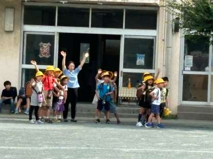 昇降口でチャイムを待っていた下級生が手を振って見送ってくれました。