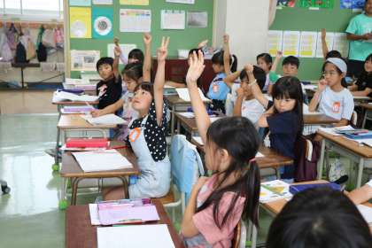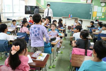 2年生算数の様子です。今日から新しい単元「水のかさ」に入りました。担任の先生は毎日遅くまで本当に一生懸命教材研究をしています。子どもたちが興味をもって意欲的に学習するために、学年一緒に考えることもあります。今日は初任者研修の一環として、校内のたくさんの先生に参観に来ていただきました。