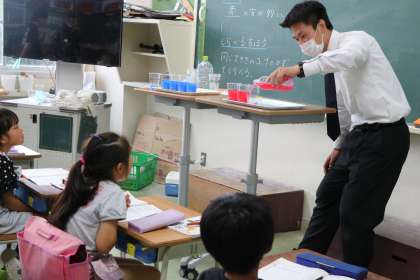先生が実際に水のかさ比べをするときも、ノートに今日わかった大切なことをまとめるときも、子どもたちは真剣に全力で取り組んでいました。