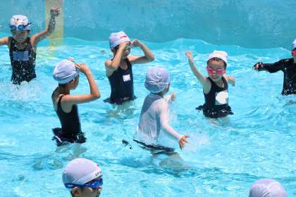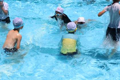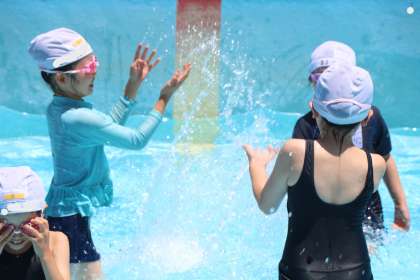 バディーの友達に水をかけたり、水中じゃんけんをしたり楽しそうです。