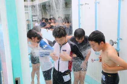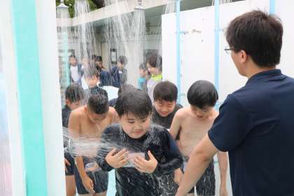 今日は日差しがなかったですが蒸し暑く、シャワーの水もプールも気持ちよさそうでした。