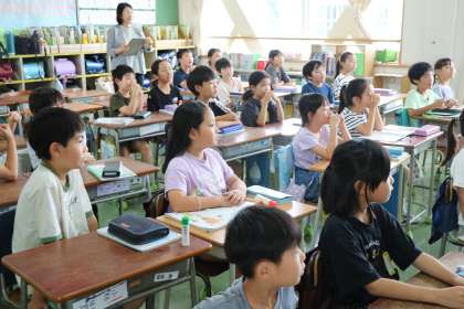 3年生算数「数をよく見て暗算で計算しよう」の様子です。教育実習生の先生が授業をしました。子どもたちが興味関心をもてるように、様々な工夫がされている授業です。子どもたちも一生懸命学習に向かいます。