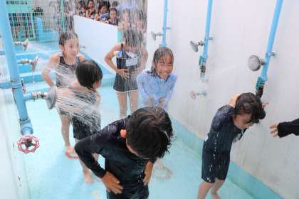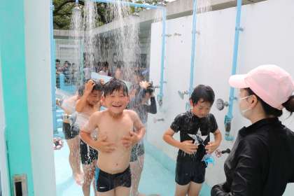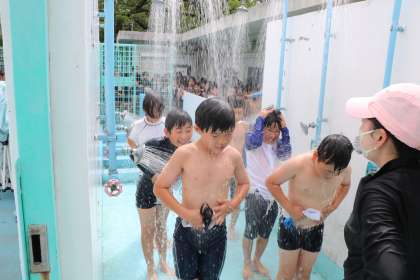 シャワーを浴びて汗を流します。