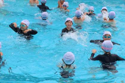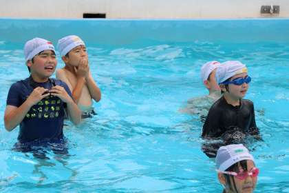 水慣れをしたり、バタ足の練習をしたり先生の指示を聞き楽しく活動ができました。1・2年の水と仲良しになろう・・・から一つ高く中学年の目標をもち、取り組んでほしいです。