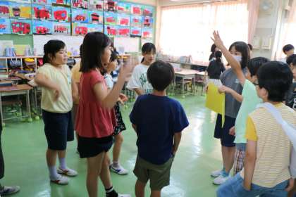 班ごとに集合し、そろった班から今日何をして遊ぶか相談です。