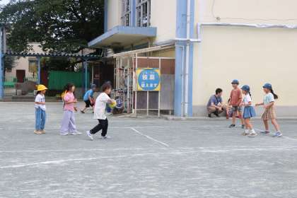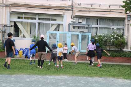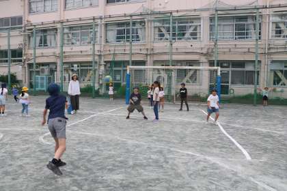 交代で外で遊ぶ班もあります。6年生の班長はもちろん、5年生も一生懸命班長を手助けしようとしています。