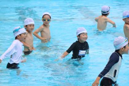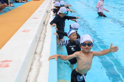 1年生体育の様子です。今日は気温31度、水温26度でプール実施可!です。
